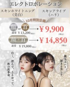 10月はこのエレクトロポレーションをお得に受けていただけます。気になる方は是非💖🏥